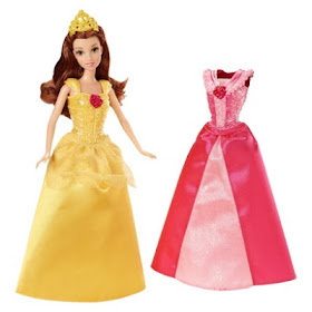 Belle comes with her wonderful pink dress and her classic yellow gown.